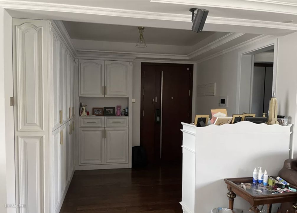 原本的玄关,柜子虽然是白色的,但线条复杂,缺少灯光的渲染,显得雍容繁杂且昏暗压抑。