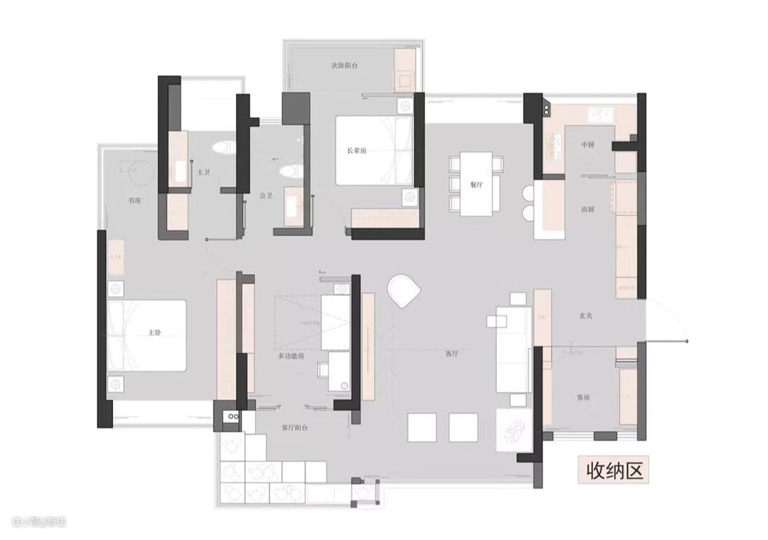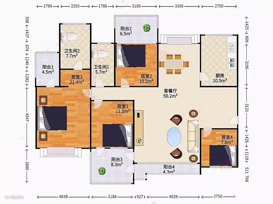 这种户型真不多见,四个阳台、主卧都南北通透,太让人羡慕了