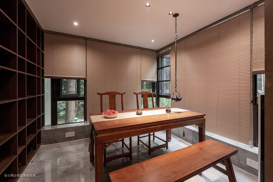 不安装普通的布艺窗帘,而是选择木质的百叶帘,不仅跟整屋空间相呼应,木色也更加的有大自然清新的韵味,更能体现古典中式的特色,也保证了隐私性。