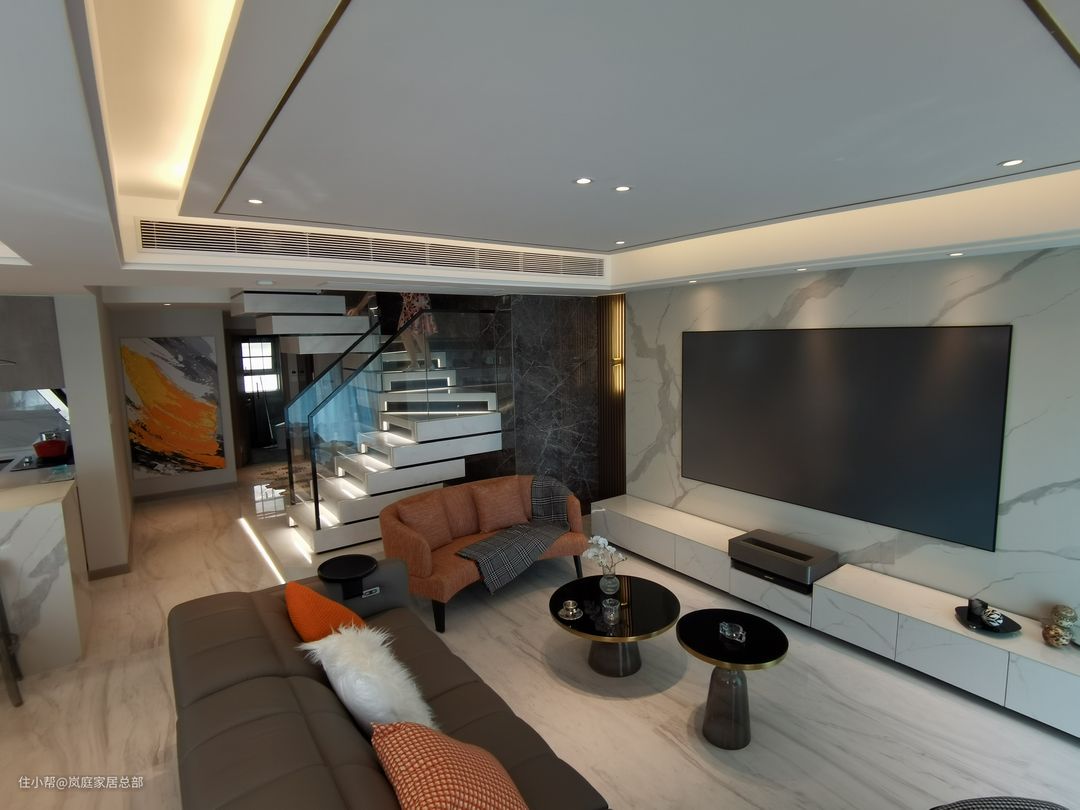 经典大横厅布局,高端商务质感的客厅设计