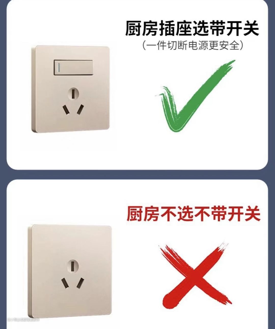 四、电工师傅给你开的插座都是正五孔的,你得自己学会变通。厨房的台面插座选带开关的,卧室床头柜选四孔和七孔的,藏在柜子里不外露的插座,买点基本款的。至于你用正五孔还是斜五孔,我只能告诉你的是:斜五孔不丑。