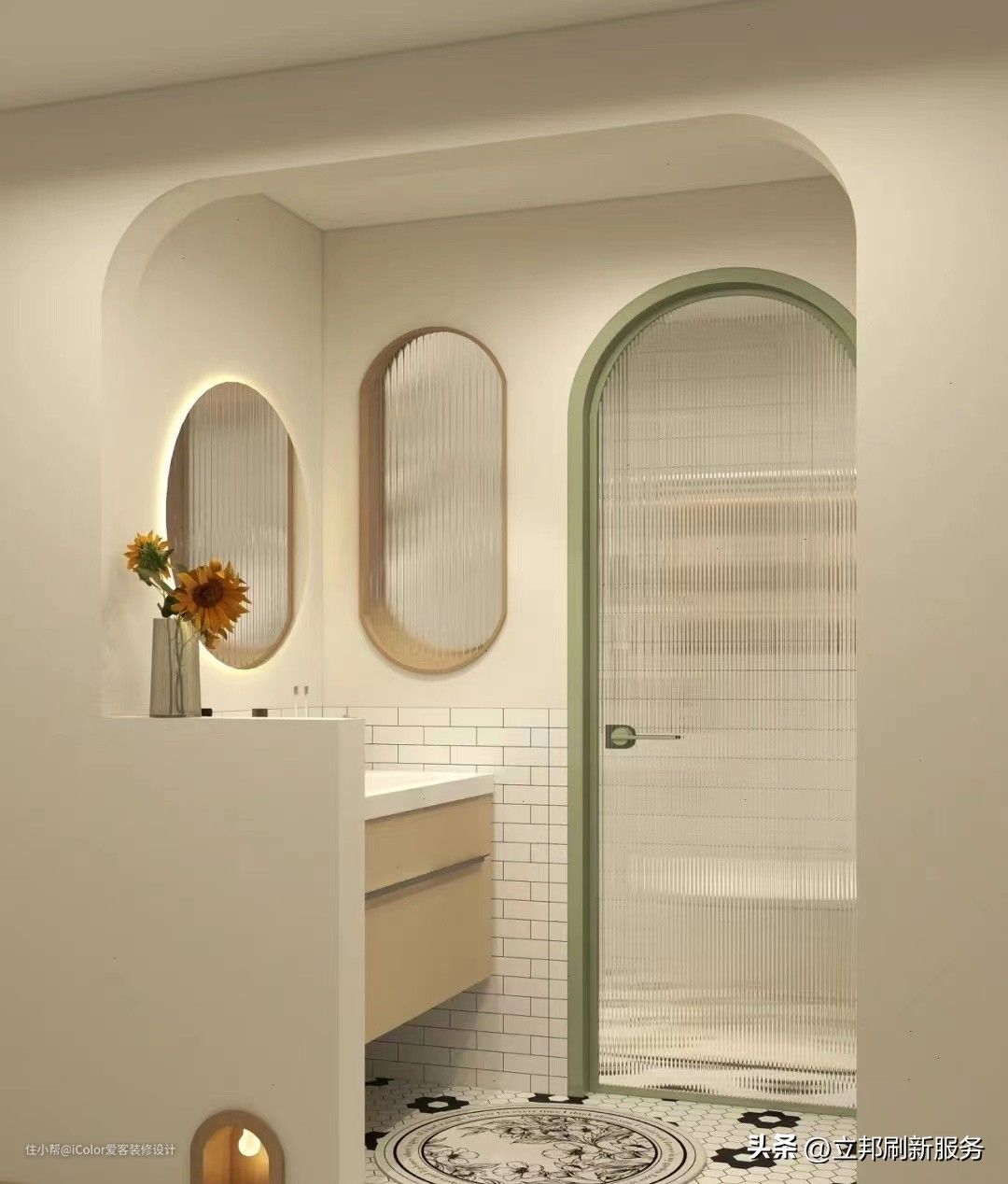 卫生间的门,建议选择长虹玻璃+合金门框的形式。建议选双层5mm长虹玻璃,颜值高且能保证私密性。另外,要选超白玻璃,否则会泛绿光,简直丑哭你!