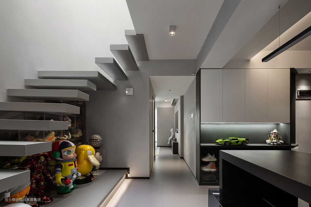 层高不变的情况下,做悬浮楼梯设计,有效放大空间感,凸显层高。