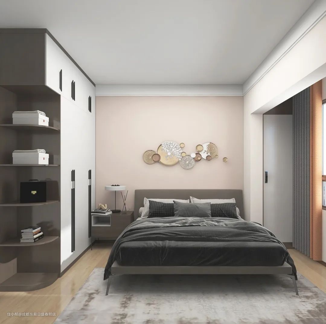设计师以起居动线为核心,规划主卧功能区,窗前小景、宽绰衣帽间责提升生活品质,藉由功能与视觉的平衡,满足更高层次的居住需求。