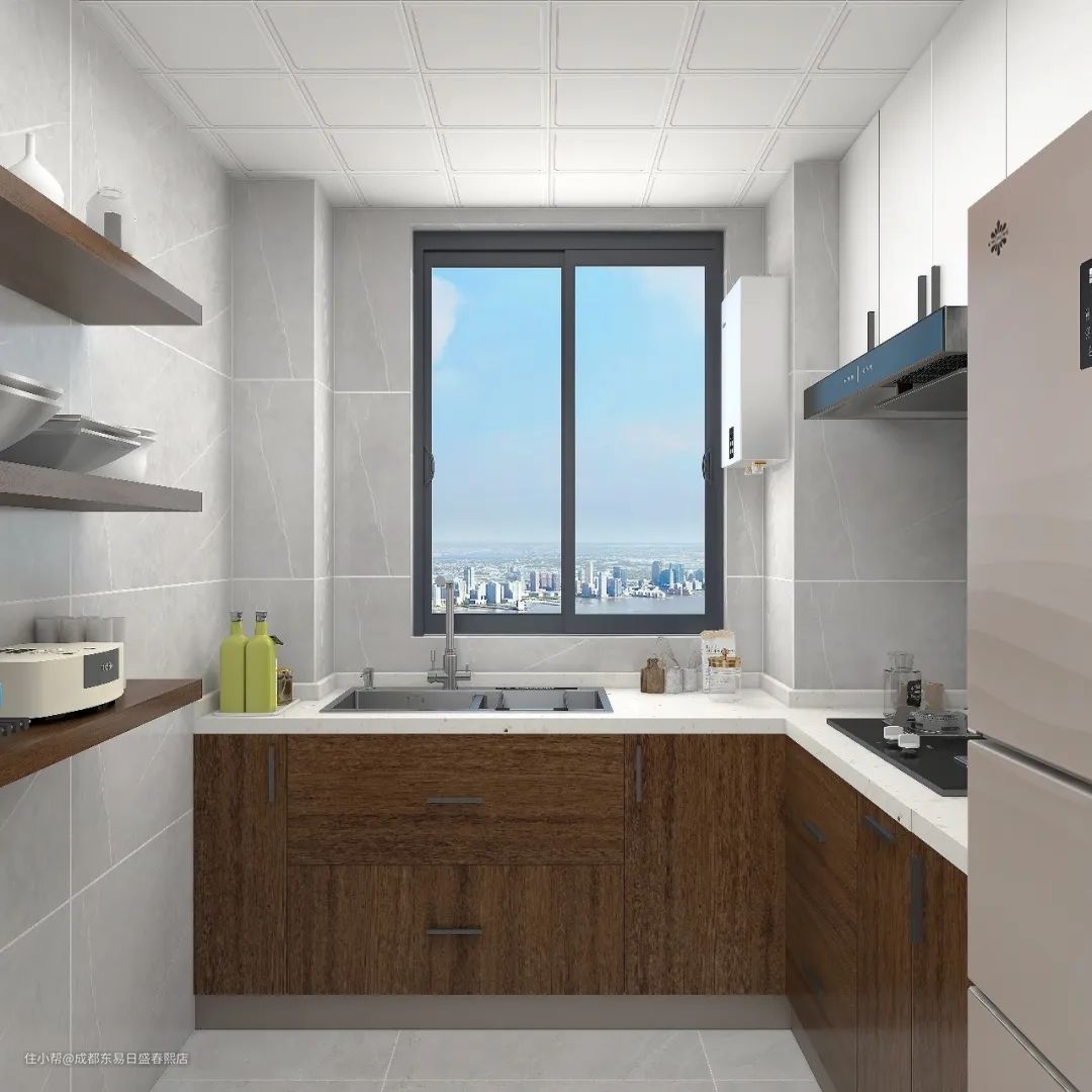 高级灰是厨房的主要基调,低饱和度的色彩组合有效的降低复杂的视觉效果对做饭时的干扰,身心自在。