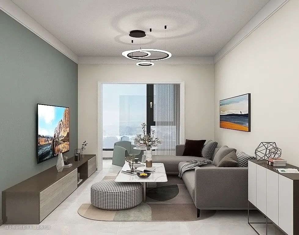 在家具沙发的选择上,我们选了偏弱的米色,也选用了弧形的沙发单品,让家里舒适感十足。