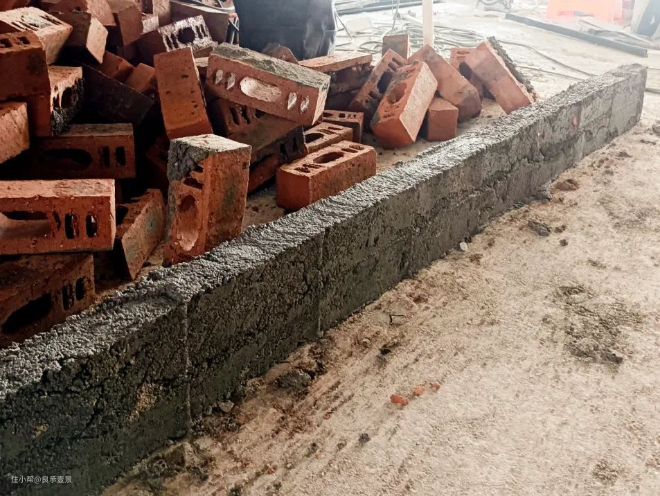 在新砌墙体定位点地面浇筑一道钢筋混凝土梁,高度建议至少做到150mm。防水梁用细石混凝土,密度大于砖体密度,能够更有效地防止卫生间里面的水往外渗透。
