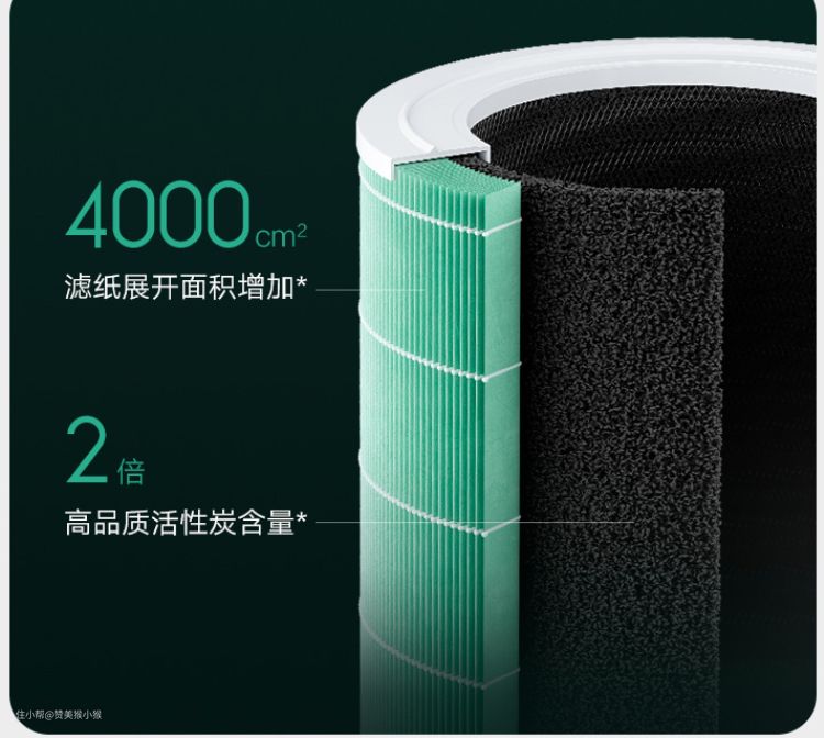 滤芯结构也采用了复合式结构,不仅有初滤层,活性炭吸附层还有Hepa颗粒物吸附层。滤芯的具体CCM并没有明确标出,不过按照P4等级,使用半年应该还是没什么问题的。