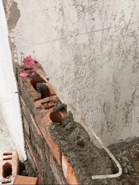 根据设计图标注植筋位置和数量,每隔500mm~600mm放置一条直径6mm钢筋。在新旧墙连接处打孔,将钢筋埋入并用植筋胶填实固定。多出钢筋留在新砌墙内,圆钢末端需要回弯成90°