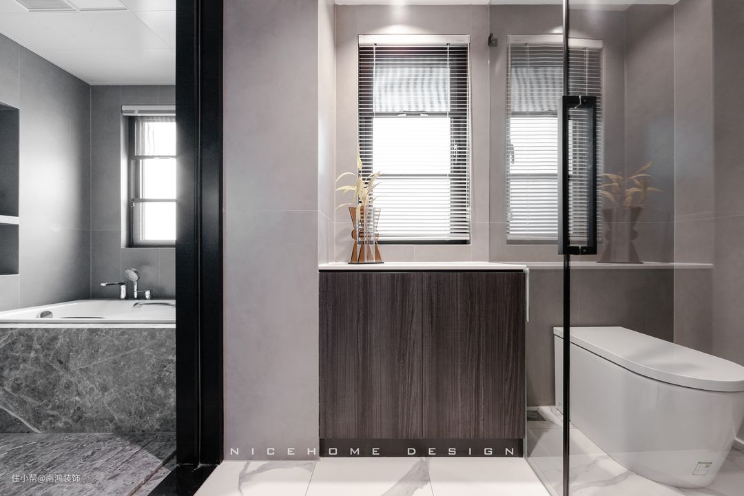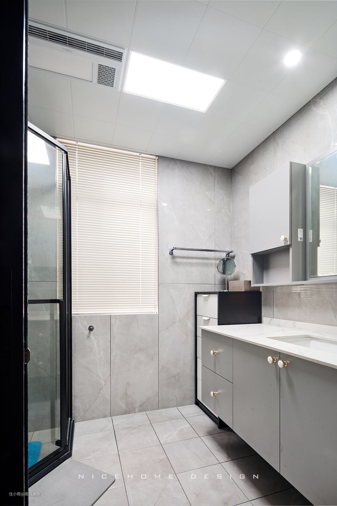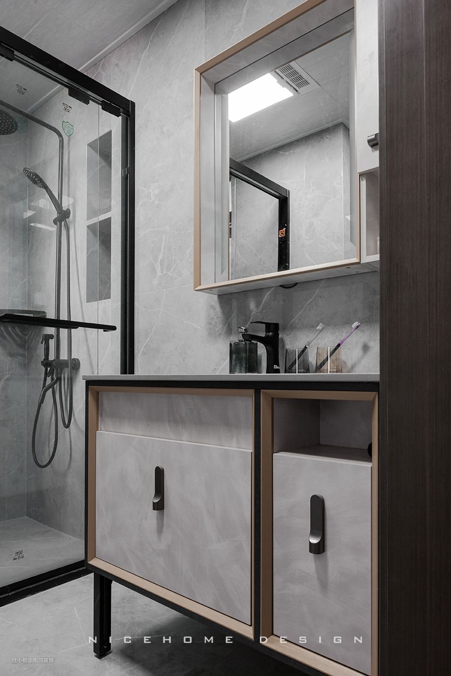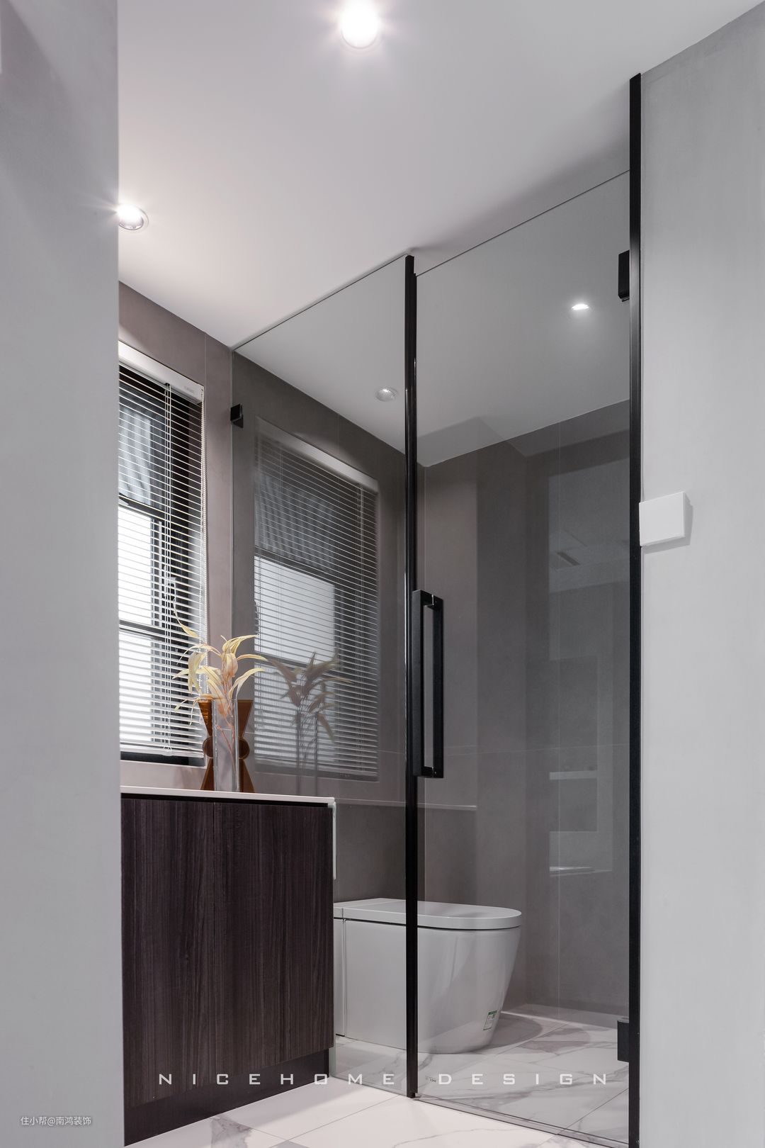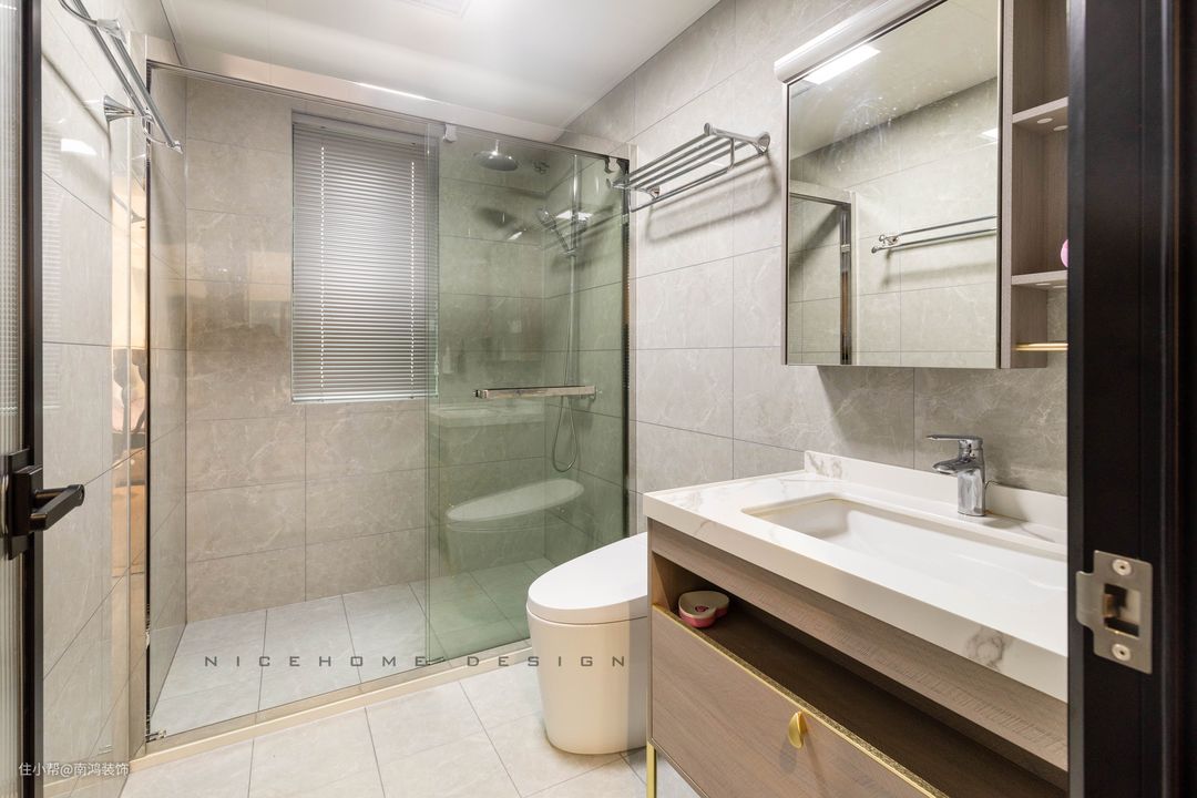 如果你家居住的人不多,空间相对也还好的话,那可以考虑干湿分离,也就是将干燥的空间洗漱区和马桶放在一起,然后把淋浴区单独隔离开,采用淋浴房的方式,这种做法下的洗澡打扫收拾都会非常方便,也不会影响如厕和洗漱。