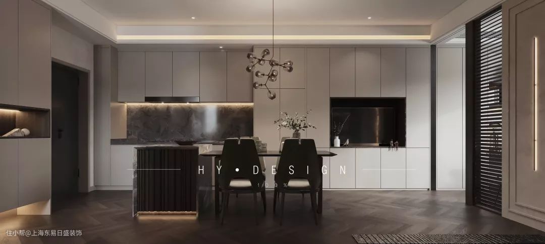 一人居暗黑风,47㎡的家居然也能在餐厅加个中岛台!