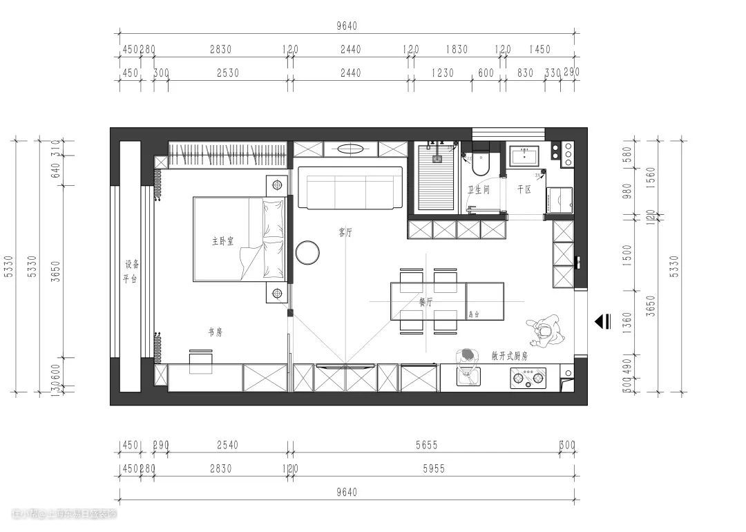1、全开放式客餐厅厨,最大化延展视觉空间,保证动线舒适流畅;