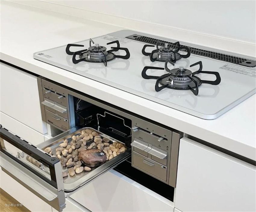 三眼灶底部通常会带一个小烤箱,它属于明火烤,可按需调节温度,做出来的食材口感好。虽然容量不大,但是平时边做饭边烤食材,非常方便,一家人吃绝对够了。