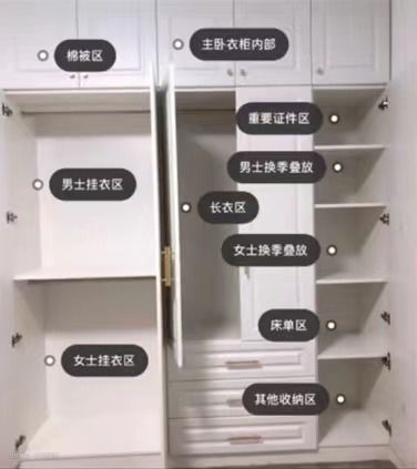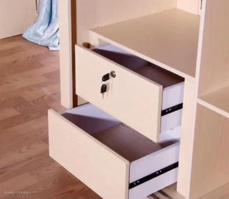 1、顶柜用来装棉被、换季衣服等不常用的物品,厚抽屉用于叠放领带、衬衣等物品