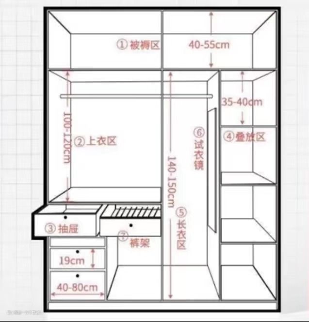 那现在去讲这些尺寸可能大家没有一个很直观的感受,就给大家看几张关于衣柜尺寸的图片