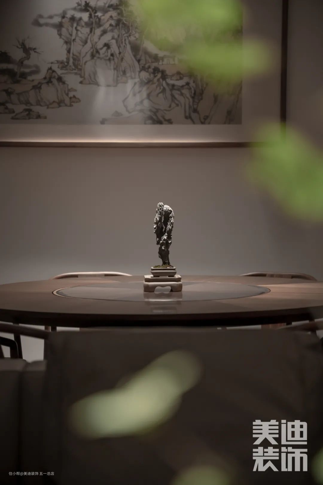 方正造型的餐桌餐椅,蕴含中国古典文化中的秩序之理。字画、绿植的点缀,塑造了人文气息浓厚的家庭文化。