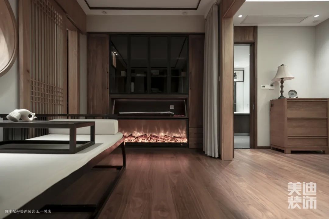 此外,深浅两色混搭的木质,将原本厚重的质感分化,迎合了所有家庭成员的审美需求。明与暗的交织,提升了空间品格的同时还增添了一丝隐秘的氛围。