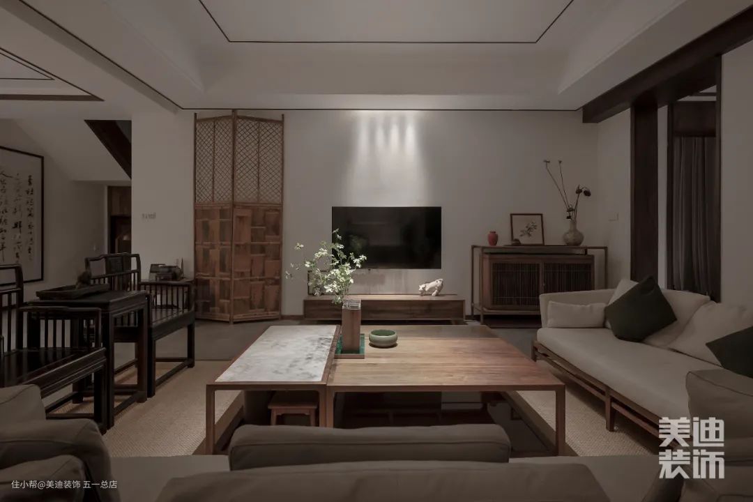 新中式风格的客厅,从陈列布局中便可知设计师的实力。