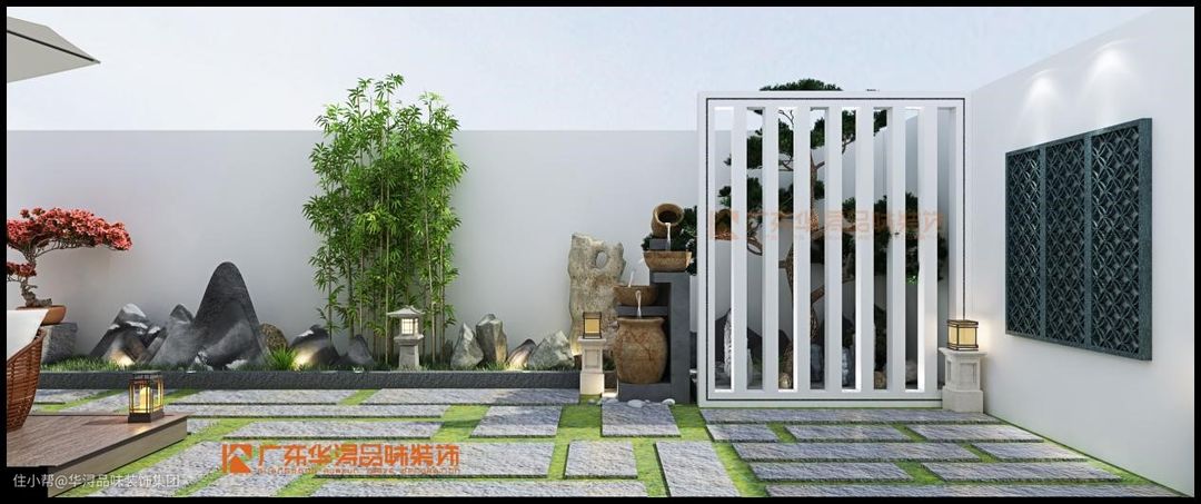 设计一处休息喝茶的休闲区域,节假日邀请好友闲聊交谈。景观的假山水池式为庭院的点睛之笔,让整个庭院的气质更加秀丽,清风拂面,自然宁静。