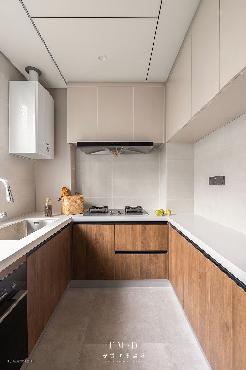 一般来说6个平方的户型大多数是长方形或是正方形居多,我们在设计橱柜的时候一般建议L型或U型操作台。L型或U型厨房都是沿着墙面布置,各个工作区之间彼此连接,因此可以很大程度上减少我们烹饪时的走动距离,且操作动线流畅,烹饪效率能够得到明显提高。