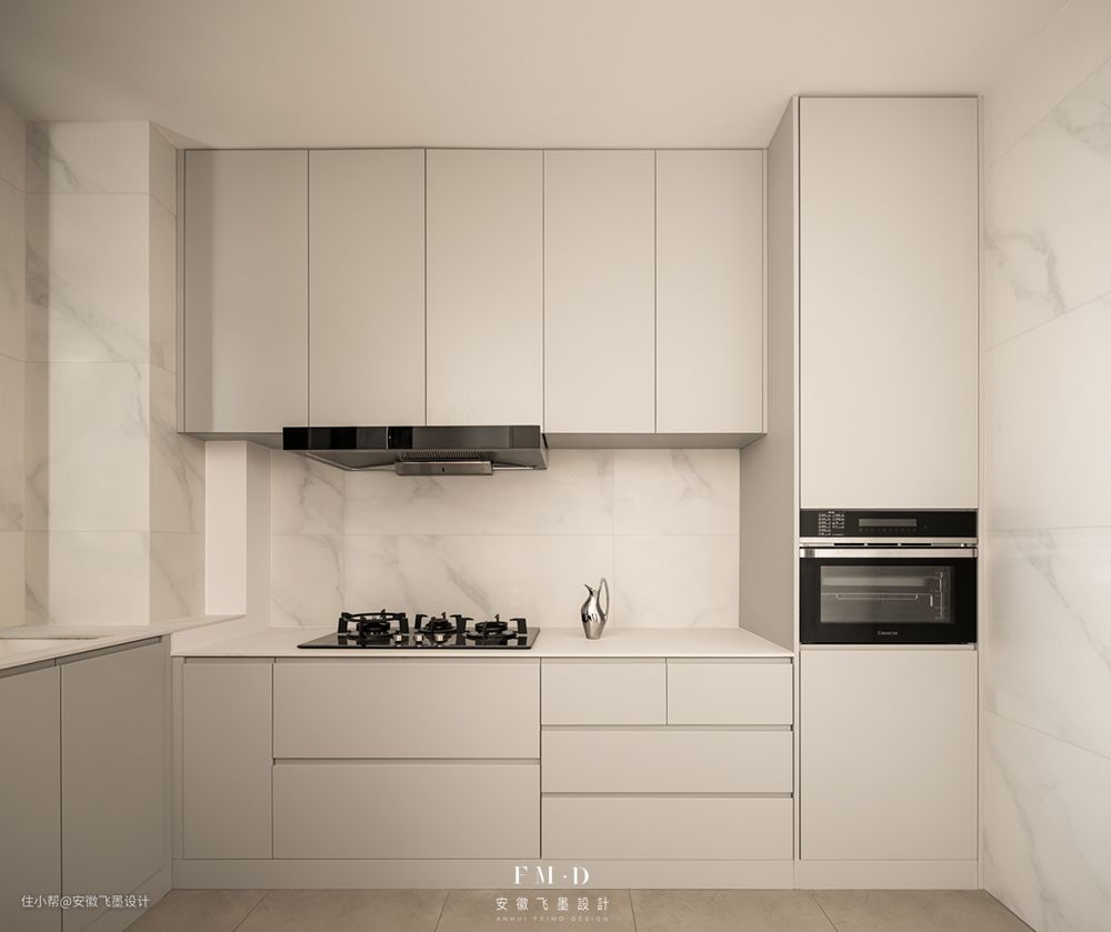 值得一提的是,采用嵌入式的电器我们需要提前购买,还要提前规划好电器的规格、件数,考虑烤箱、电冰箱等电器是否能够安排得下,以方便后期全屋定制预留空间,避免家电装不进去的情况发生。