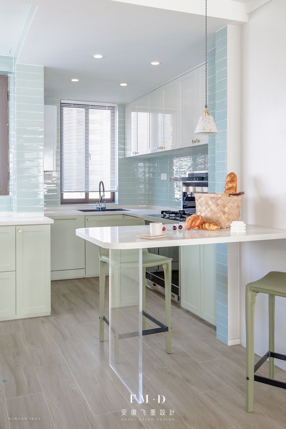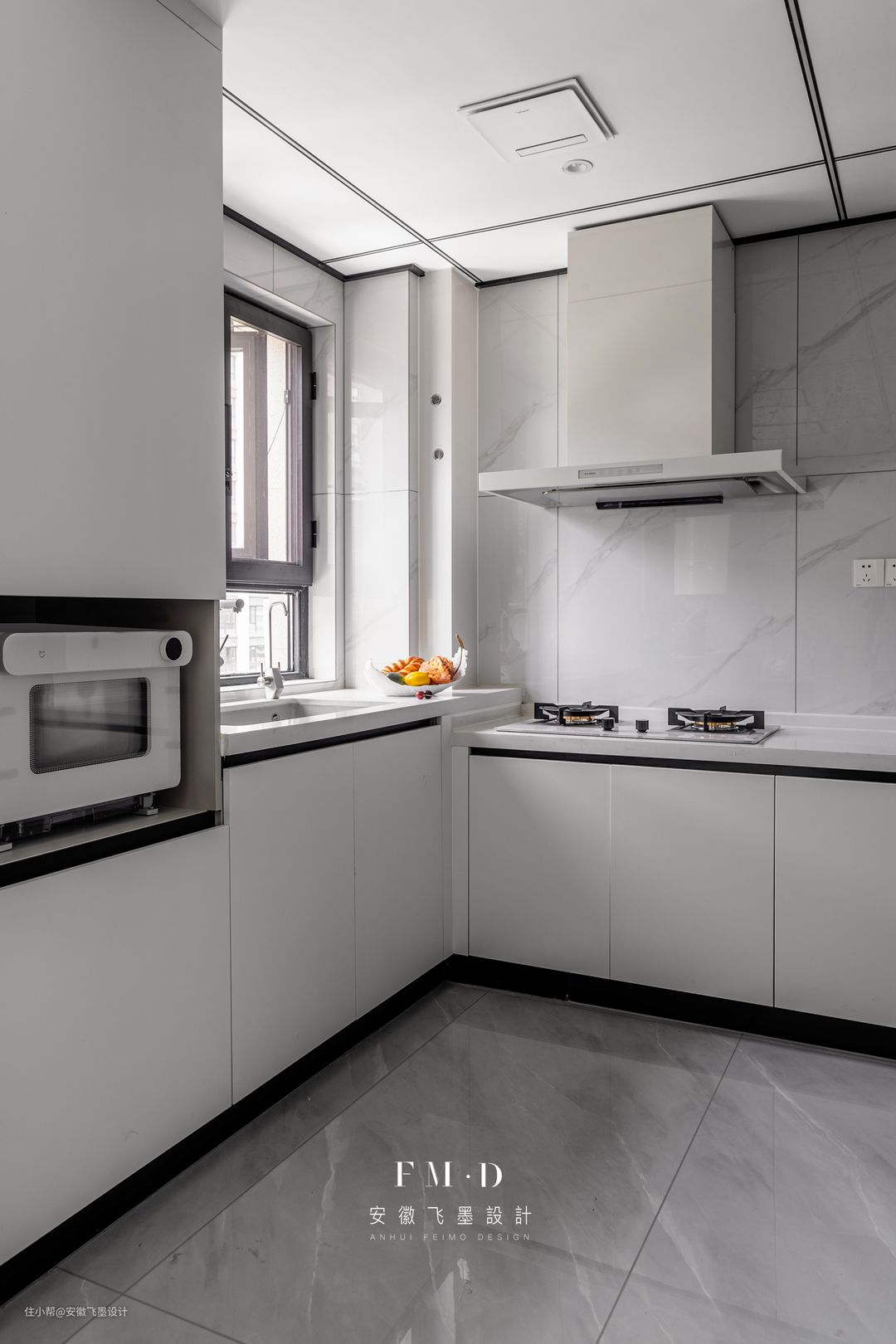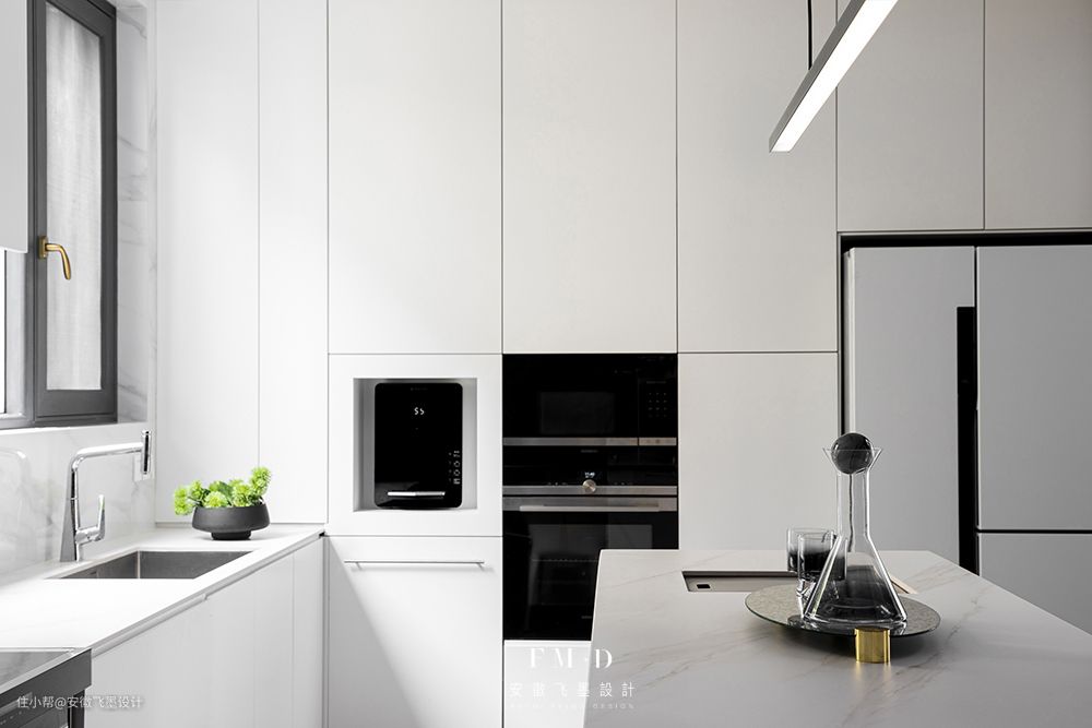 厨房的空间比不上客厅与卧室宽敞,因此我们最好选择嵌入式电器满足日常生活需求,如烤箱、微波炉、冰箱、洗碗机等。这样不仅可以节省空间,还能让厨房看起来干净利落、整洁大方,颜值顿时上升。