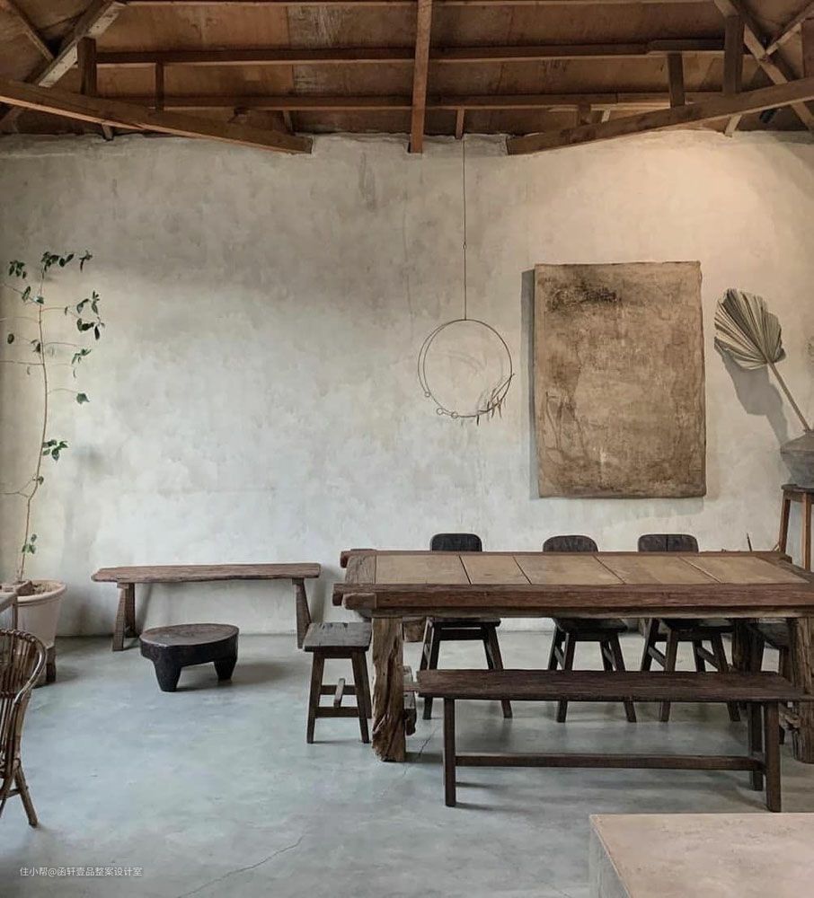 当你走进一间日式侘寂风的空间,应该立刻会被充满手作纹理的重点端景墙所吸引,不管是矿物涂料、特殊涂料、艺术漆、硅藻泥或壁布等,这些涂料会随着时间而产生表面的细微变化,又能够创造出没有修饰的自然氛围,形成日式侘寂风的无常美感与宁静调性。