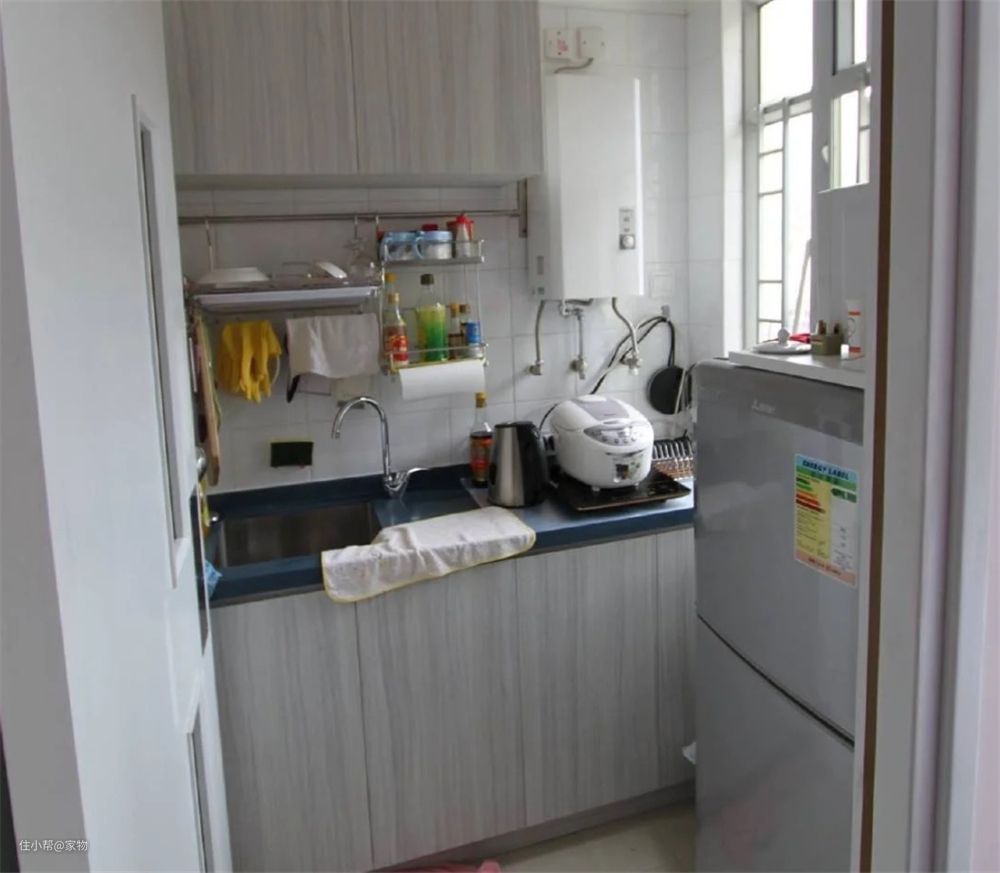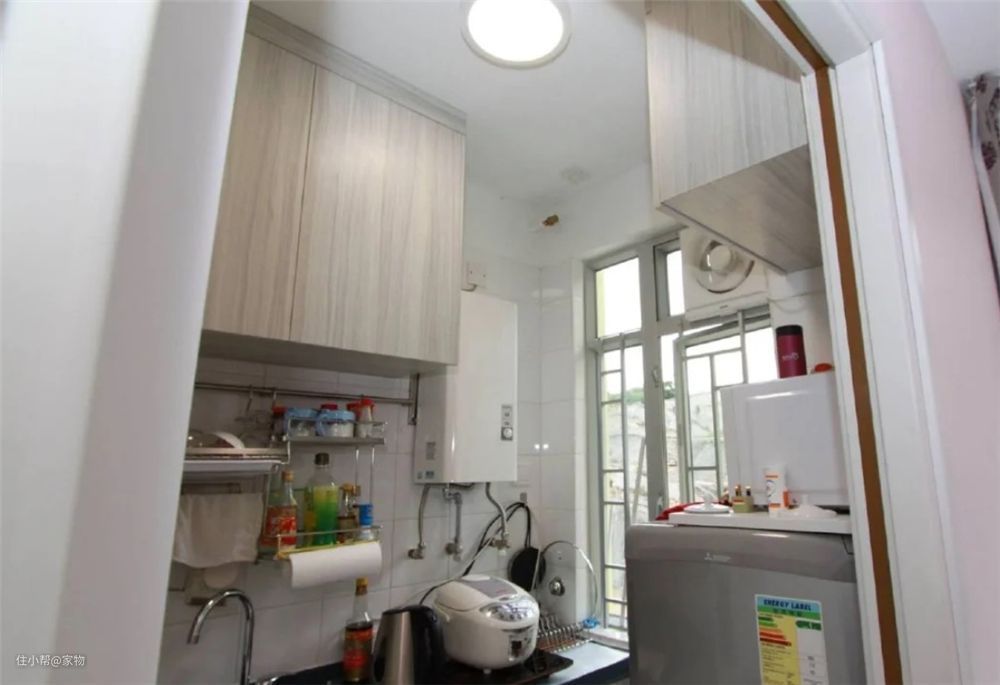 当然,小厨房内也有个优点,就是有一扇相对较大的窗户,将充足的采光和优秀的通风能力带入室内,一定程度上减轻了小空间带来的逼仄和压抑感。