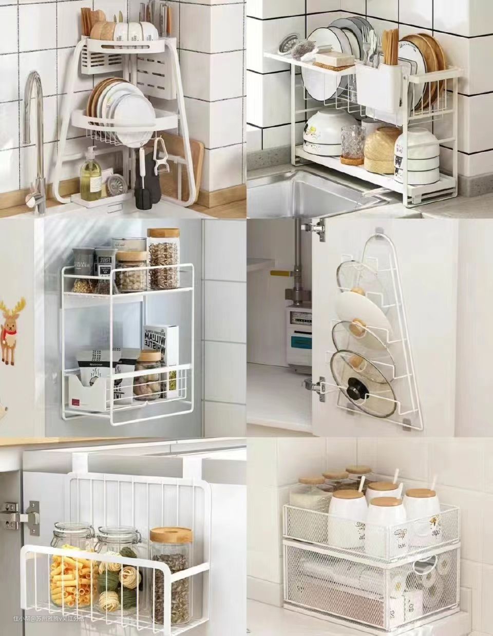 厨房的墙角、柜门、冰箱门大家也不要忽略不计,可以安装上这种拐角、柜门置物架,这些地方利用起来简直绝了,被遗忘的死角空间也重新利用了起来!