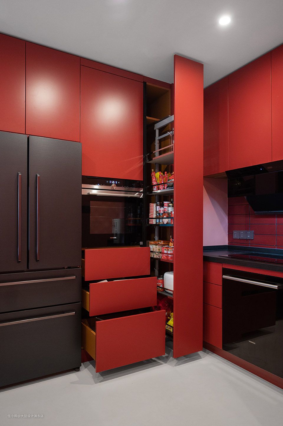 高柜堪称厨房的“收纳大师”,深邃的篮筐简直就是高柜的完美搭档。开门式拉篮设计,即使装满物品也能轻轻拉动整个柜子,妥善收纳小专家。