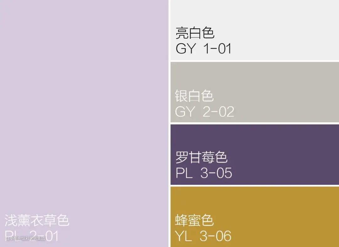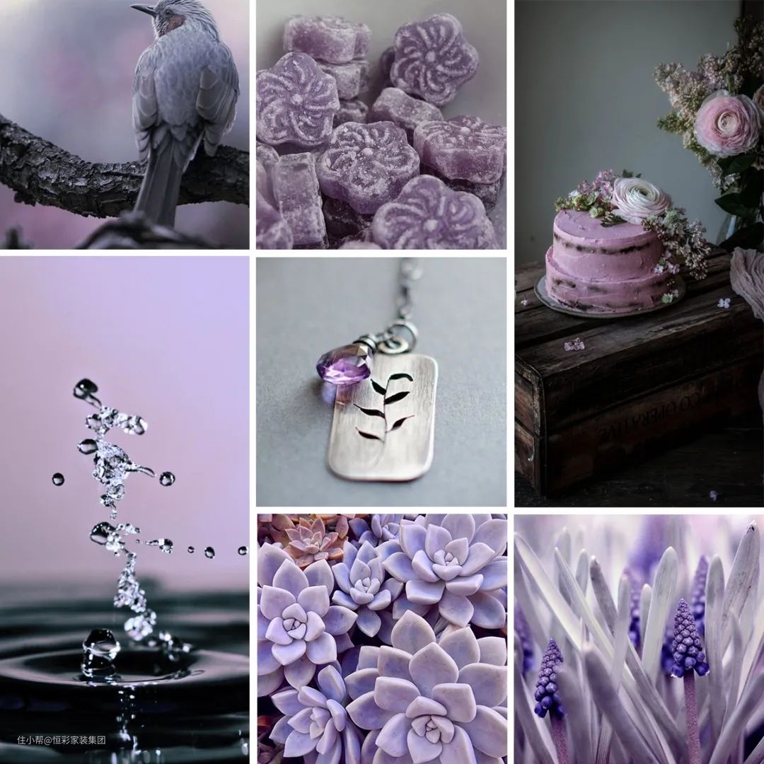 越鲜艳的紫色,因为过于艳丽,面积太大看久了就容易觉得腻,所以用的面积要小;而灰调、浅色调的紫色则可以相对大面积用,因为较清浅,所以不会太惹眼,反而给人一种温和,恬静的美感。