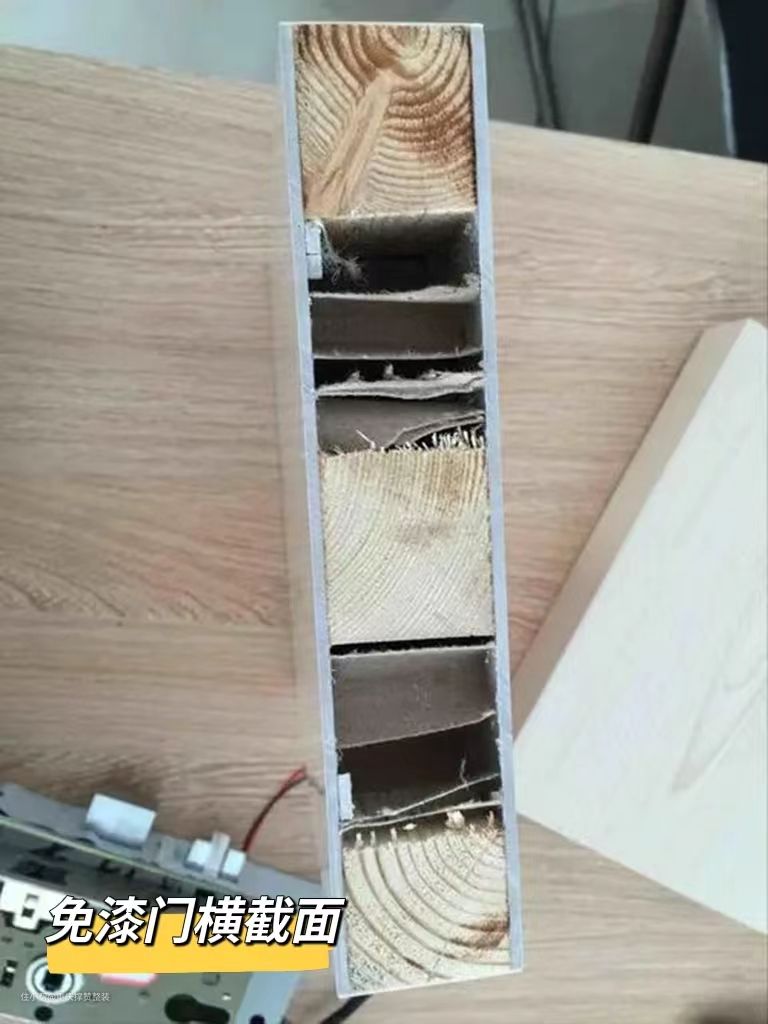 免漆门是用木方做框架,中间用的是蜂窝纸,表面用密度板贴三聚氰胺饰面,表面的图案其实就是贴纸,低端的免漆门便宜就便宜在基本没什么木头,全是纸。我们经常听到的生态门,其实本质上也是一种免漆门,只不过填充物把蜂窝纸换成了实木方,但是生态门为了控制造价,用的实木方基本都是一些工业废料,各种种类的都有,大块小块的也有,缝隙只能用胶去填充,也就是说除了名字并不环保,所以说只要你的预算不是特别低,实木复合烤漆门一定是你最好的选择。