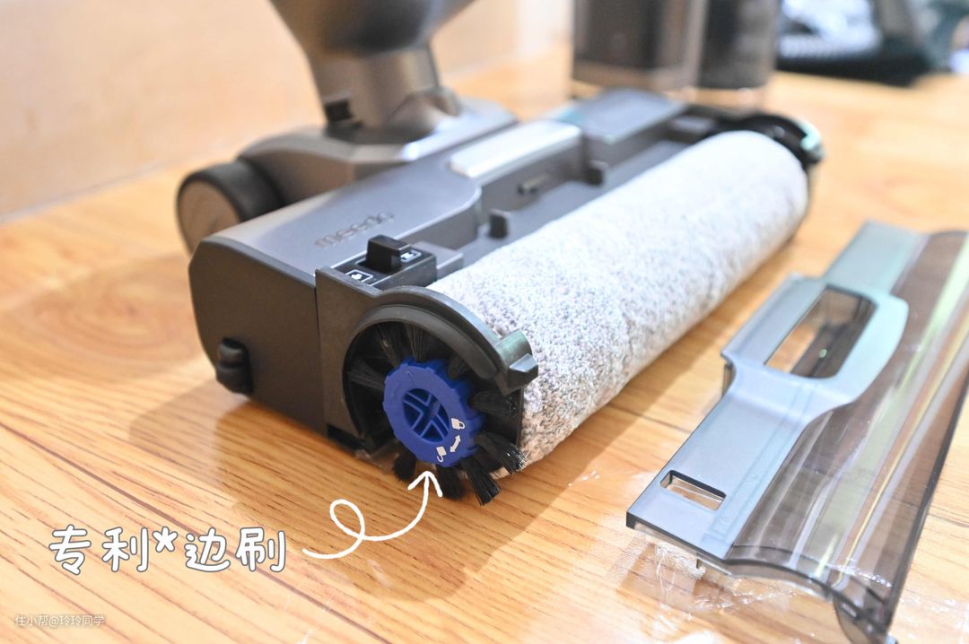洗地机最大的优势应该在吸拖洗三合一,无论干垃圾还是干湿混合垃圾都是一拖就能清洁掉,比起传统拖把是真的省心省力不少。洗地机模式下我一般用的是绒毛滚刷,这个刷头是地板专用的,绒毛材质对地板不会造成损伤,使用起来也很轻便。