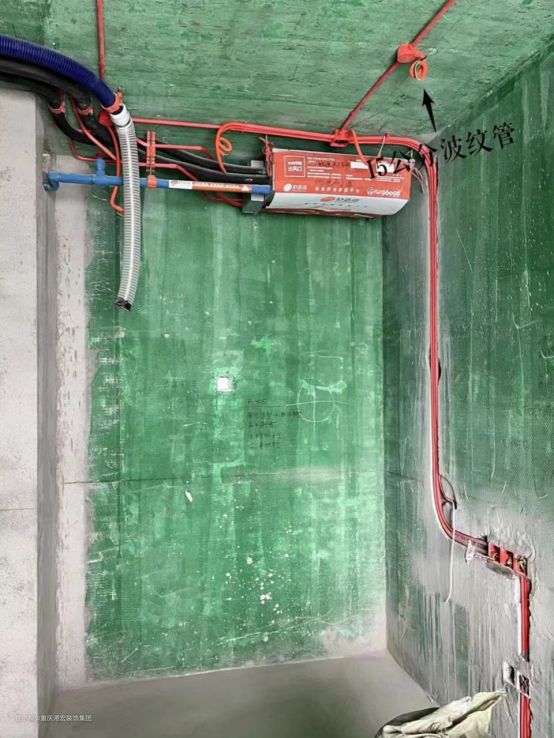 4、水电走顶施工标准:如果顶部有设备安装,电线需走顶方便后期检修。安装灯具位置预留15公分长度,方便后期位置调整。