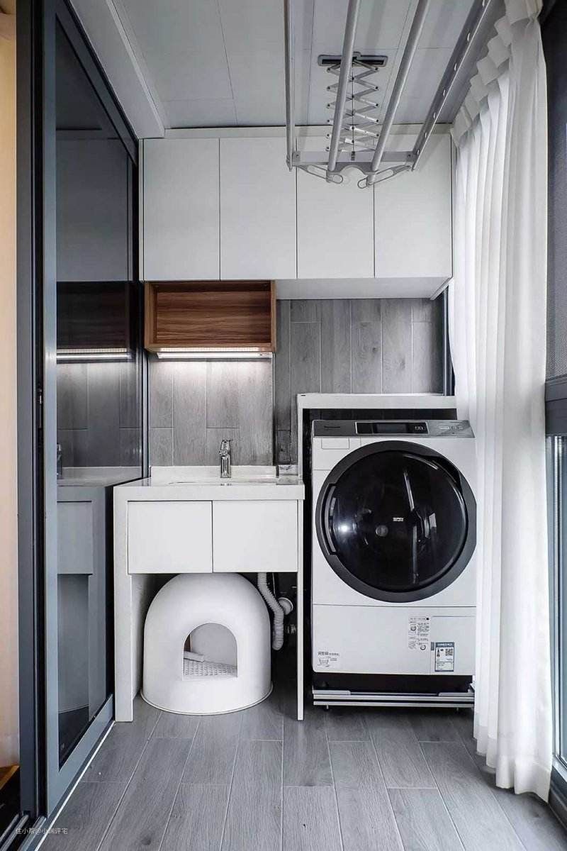 所以这种不装阳台门的设计,也更适合使用滚筒洗衣机。