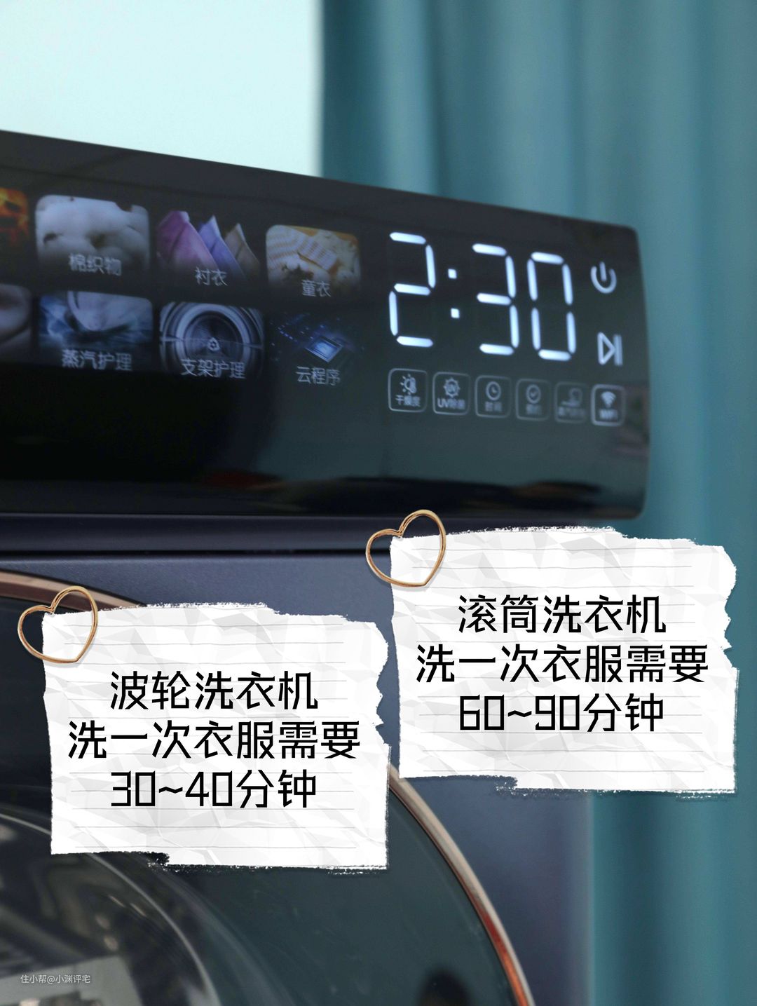 也正是因为如此,市面上在售的滚筒洗衣机的洗涤程序,都会把洗涤时间延长。既然效率不行,那就通过时间来凑。如果不考虑时间的话,滚筒洗衣机的洗涤效果和波轮洗衣机是差不多的。