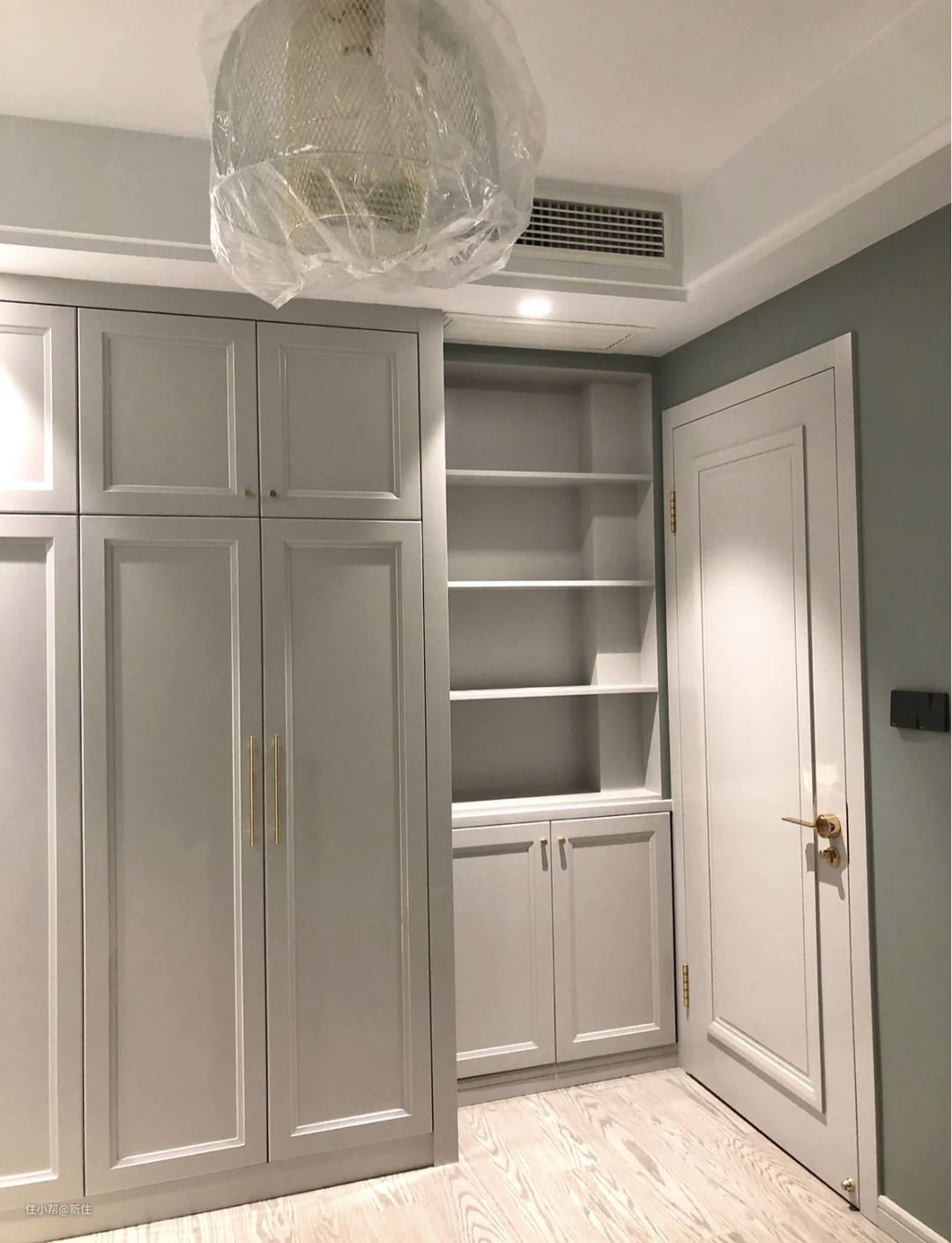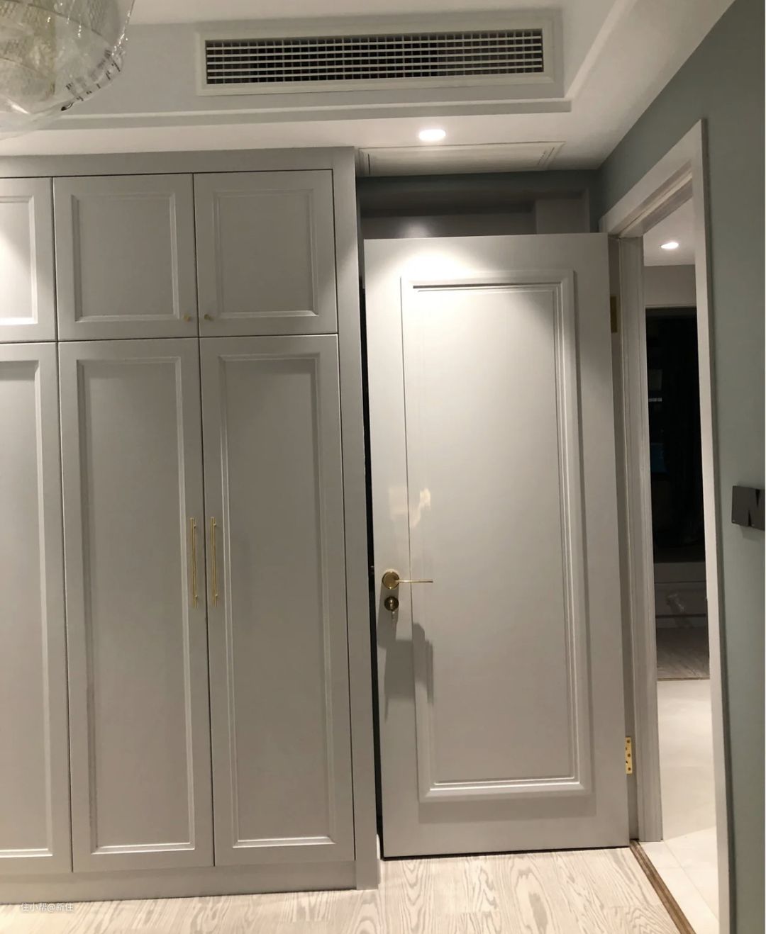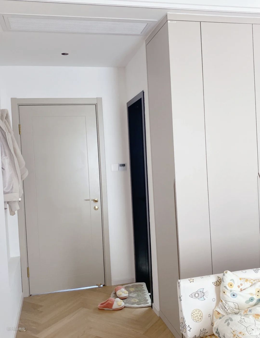 如果走廊宽,也有一定的厚度,直接参考下面这位住友的做法,做成一门通顶的储物柜。