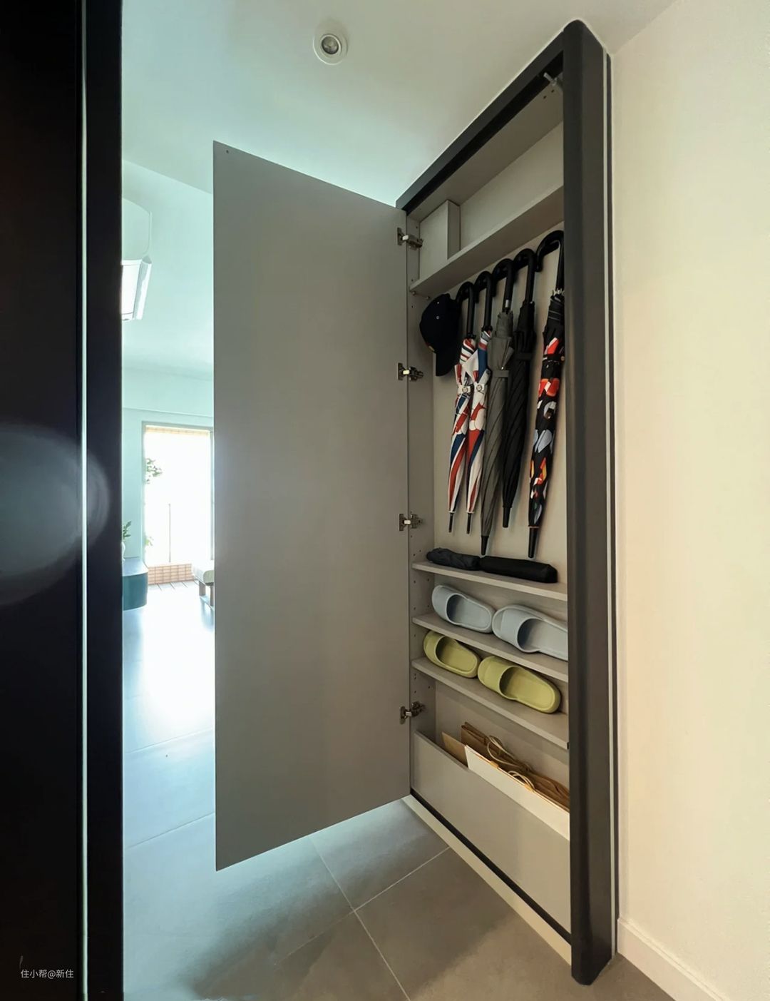 也不至于像很多家庭那样,把雨伞塞进鞋柜里,打开都是一股味儿。