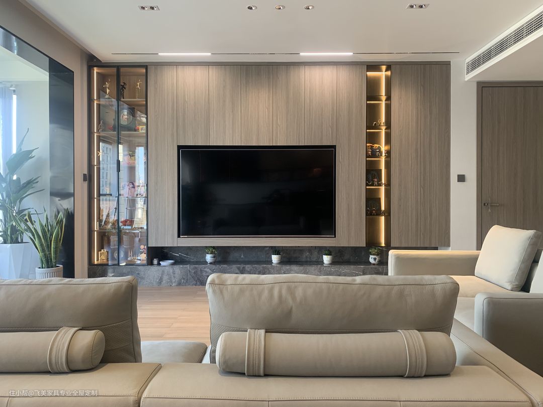 所有极简门与客厅电视柜&装饰柜木饰面统一,相互映衬,空间之间有了联系,不显突兀