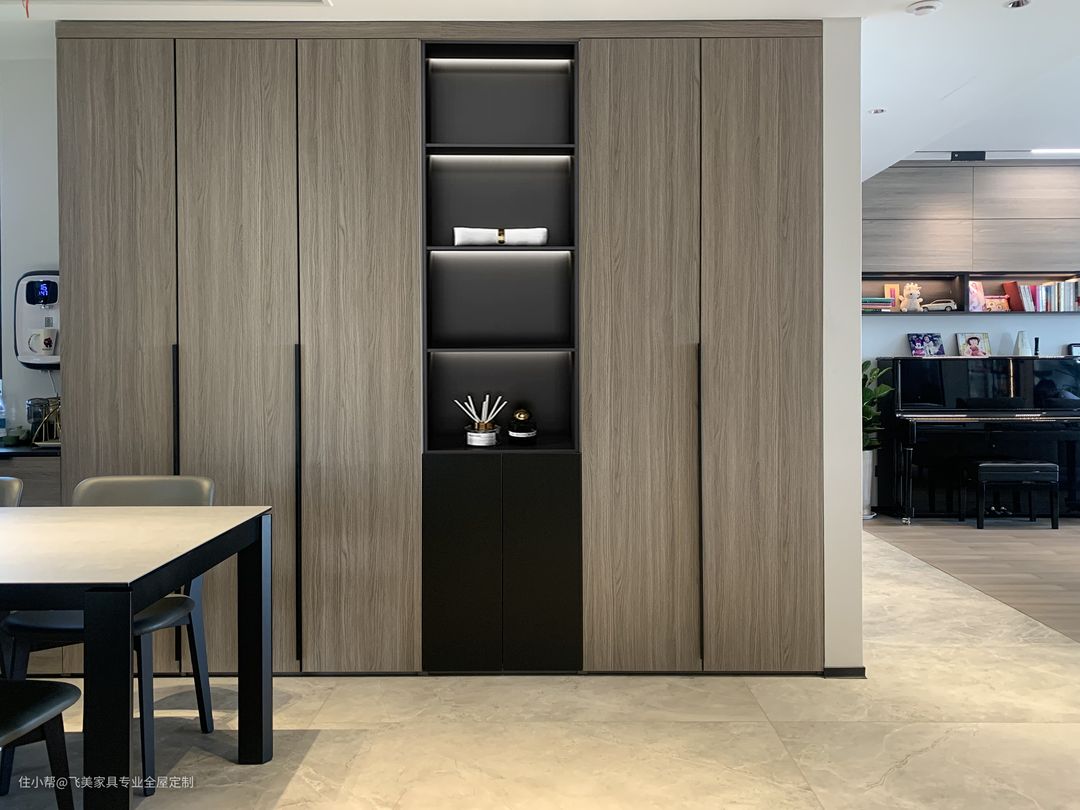 餐边柜的灯带与家里其它的色温相统一,开关方便,轻松营造氛围感和空间感