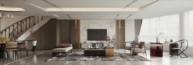 新中式风格将中式和现代风格相结合,融入了两者之间的长处,以沉稳大气、庄严典雅这样的设计为出发点,既继承了中式的传统元素,又融合了现代简约的时尚生活理念。设计并不是单一的复刻,而是尊重传统、改革创新,打造一个全新的生活居所。