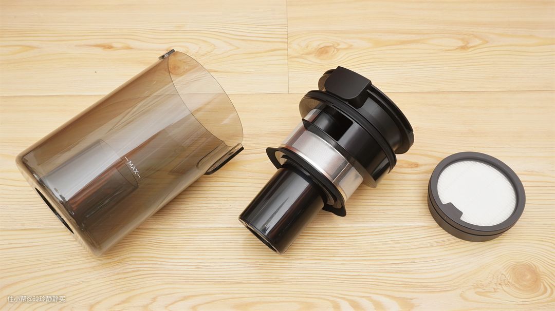 尘杯可逐个零件拆卸,便于倾倒垃圾。也能明显看出追觅吸尘器在用的气旋结构。
