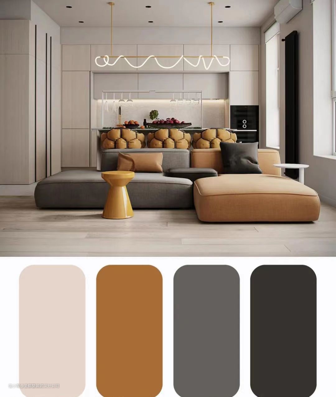 ️️⭐️大面积奶茶色搭配丁子色和深灰,不容易审美疲劳,摩登又高级。