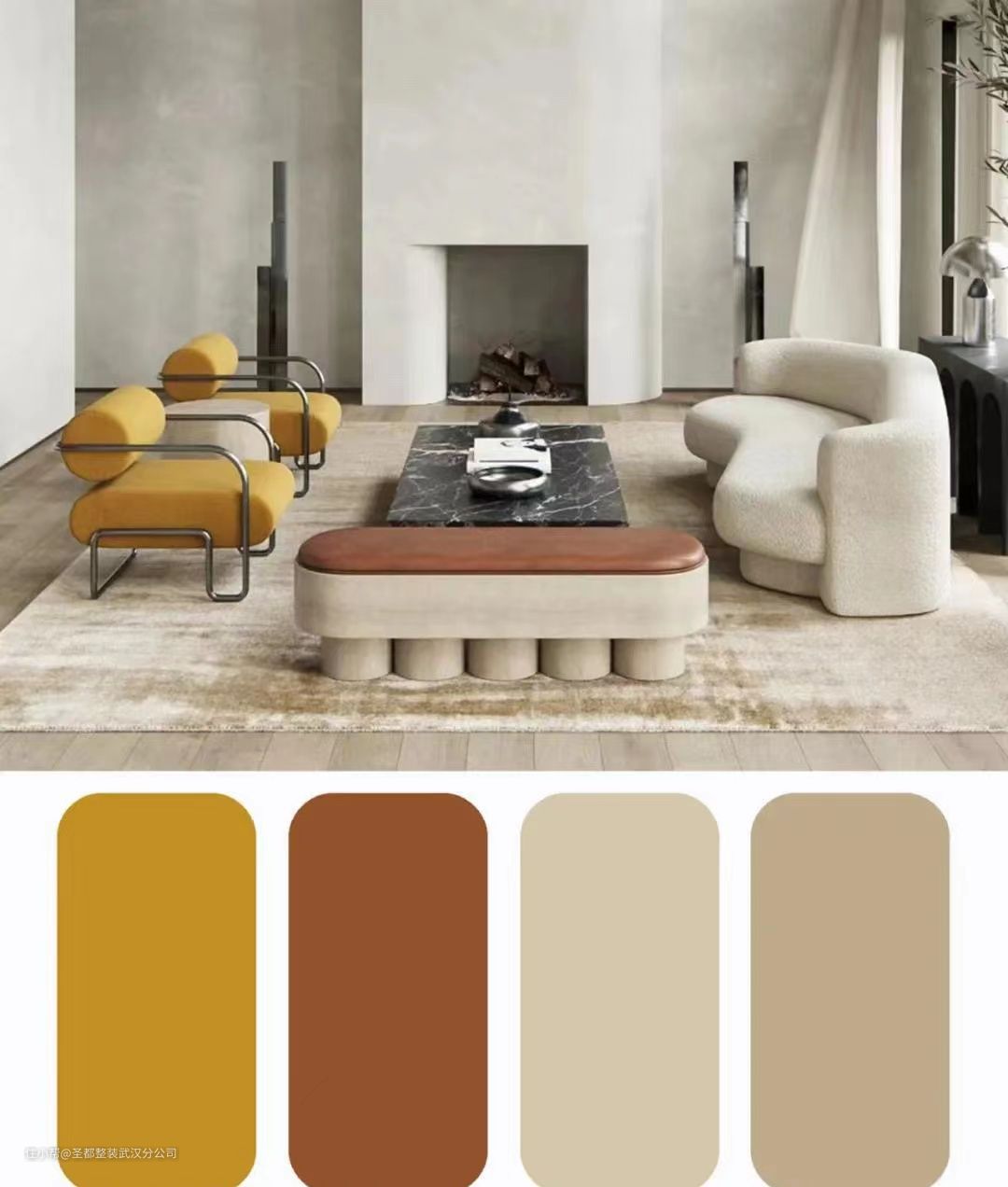 ️⭐️️用燕麦色或者练色打底,搭配同色调软装,用萱草色和栗色少量点缀,高级又温暖。