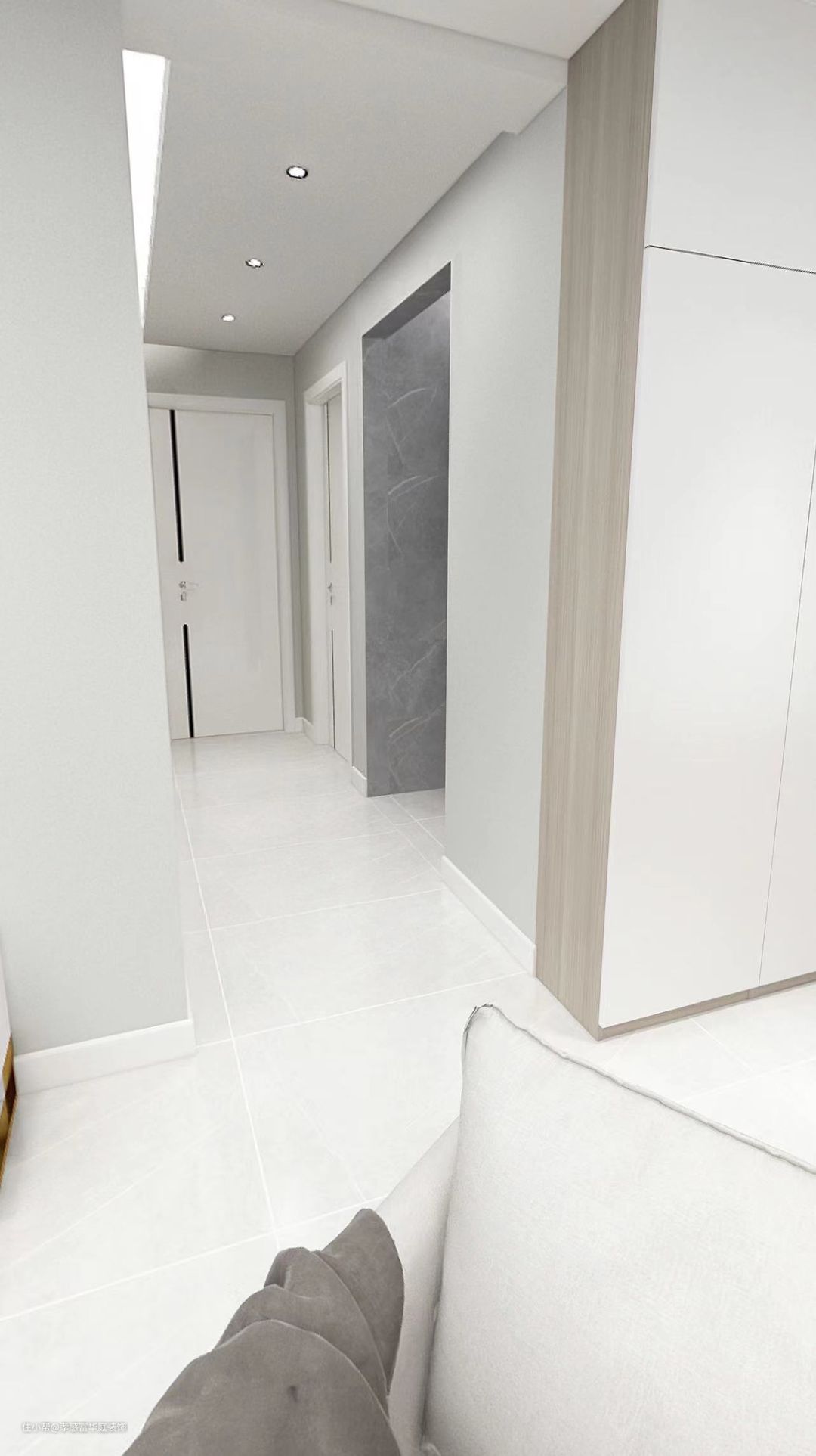 ◆ 为了最终视觉效果的高级感,墙面部分选择了简约的灰白色,地板和地毯也都遵循简约原则,回归简单的即为高级