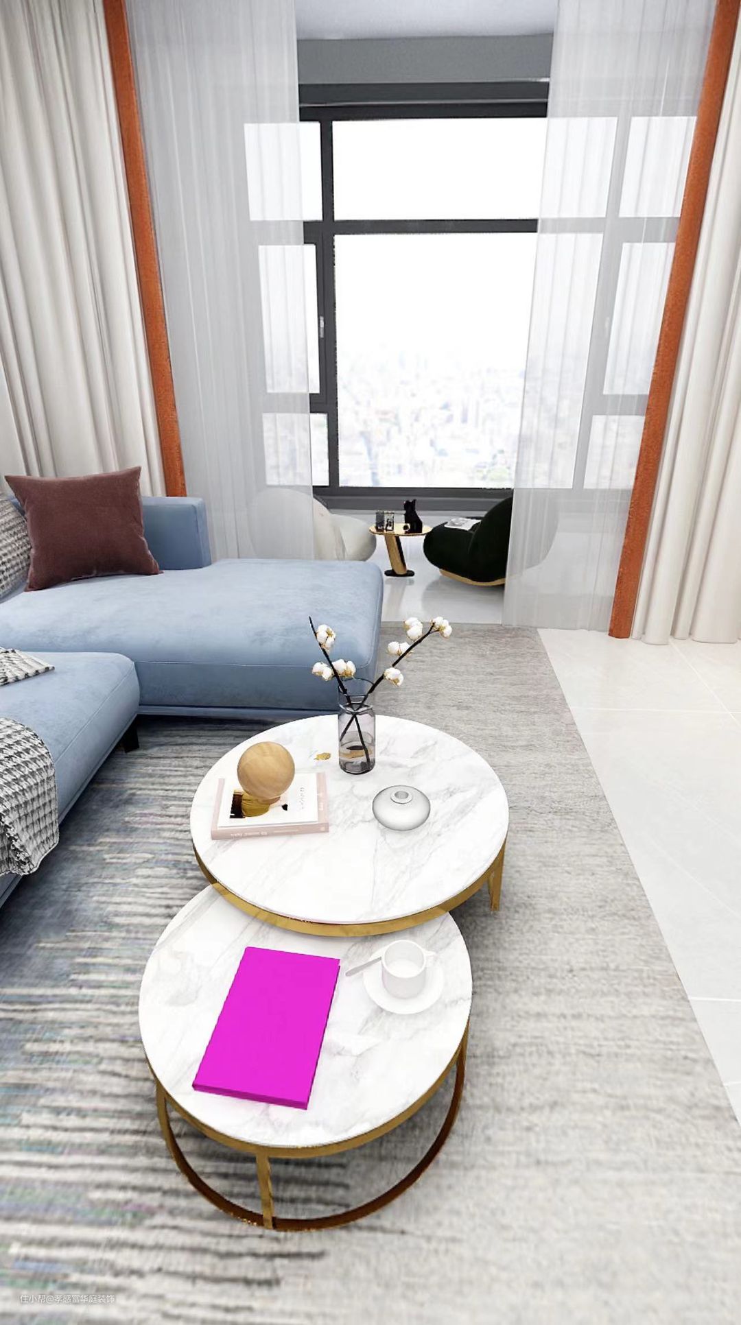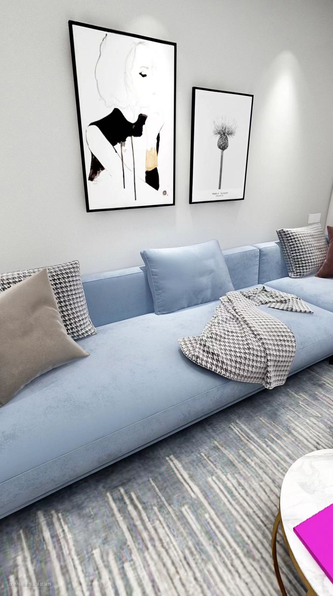 ◆ 客厅映入眼帘的最亮眼的存在就是浅蓝色的布制沙发,小清新的配色,清爽舒适