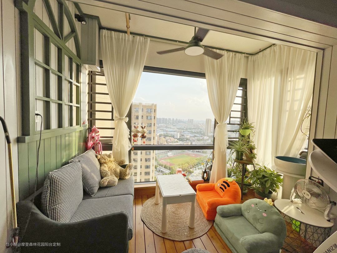 阳台更大一点的,可以和孩子搭帐篷模拟露营的感觉,有利于增进亲子之间的感情,不能出远门的日子,把阳台当成诗和远方,低头是人间四季、谈笑风生,抬头的城市流转、车水马龙,和最爱的人,享受惬意的慢时光。
