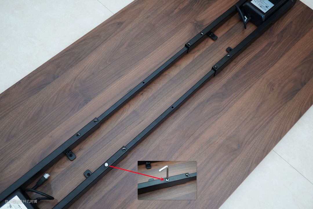 ▲北弧M1的桌板和配件是分开包装的,我收到的时候外包装和内部元件都很完整,没有损伤。可以看出,北弧M1的所有主、配件包括1块桌板、2对横梁(螺丝孔相对)、2根伸缩横梁、2根侧架、2根升降桌腿、2个底座、1个适配器、1根延长线、1个电源插头、1个控制面板、20枚M6×12螺丝、5枚ST4.2×13螺丝、4枚ST4.2×25螺丝、8枚ST4.8×16螺丝、2枚平头ST4.8×16螺丝、8枚无槽螺丝、3个理线器、1把5mm内六角扳手。最后用下来还剩了几枚螺丝,可见留有余量。