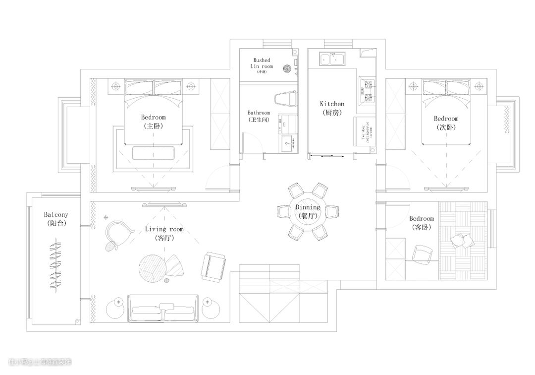 【导语】本案常住三口人,偶尔会接长辈过来小住几天。夫妇俩的儿子已经上大学,所以次卧里做了书桌衣柜一体化设计。他们希望家里简单感觉,有色彩点缀,有较大的储物空间。