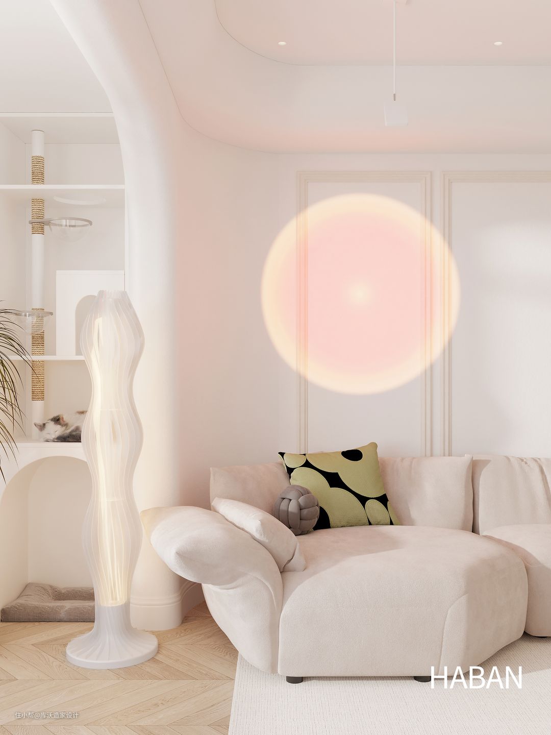 阳台门做拱门设计,阳台一角设计定制四层猫屋,给可爱的小猫咪一个独属于它的小天地。